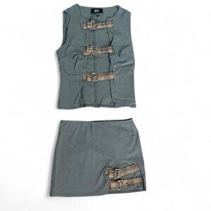 Grey Buckled 2-Piece Set (Top and Skirt)