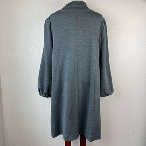 Soft grey button-front robe designed for comfortable lounging. Features roomy sleeves and a relaxed fit for easy layering. Lightweight, breathable fabric provides all-day comfort. Stylish grey color works well with any sleepwear collection.