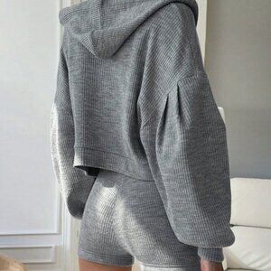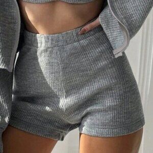 Grey Casual Women's 3 piece set, bra shorts and cardigan