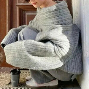 Grey Casual Women's Asymmetric Collar Long Sleeve Loose Sweater