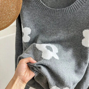 Grey Casual Women's Crochet Floral Pattern Sweater Top And Pants Knit Set