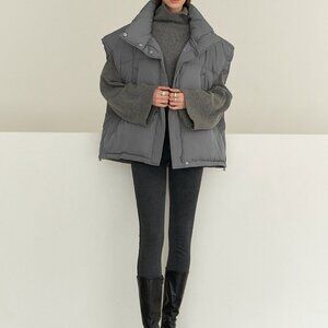 Grey Casual Women's Drawstring Hem Sleeveless Zip Front Puffer Pockets Coat