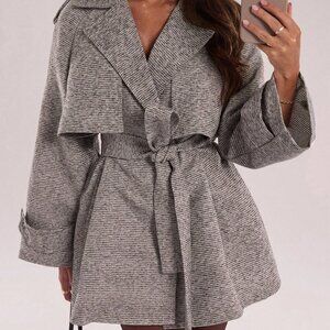Grey Casual Women's Drop-Shoulder Sleeve Plaid Oversized Trench Coats