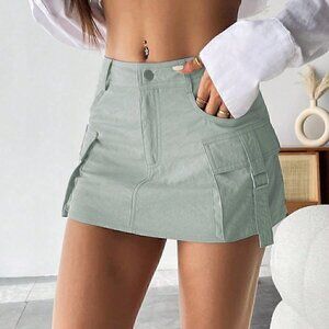 Grey Casual Womens Flap Pocket Side Cargo Skirt