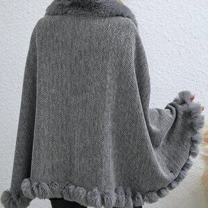 Grey Casual Womens Fuzzy Trim Cape Cardigan