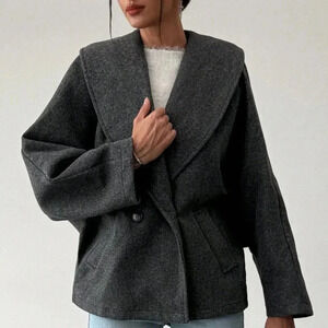 Grey Casual Women's Gray Elegant Blend Lapel Coat