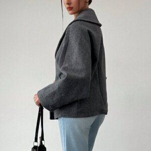 Grey Casual Women's Gray Elegant Wool Blend Lapel Coat