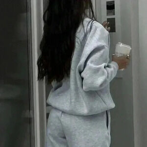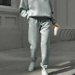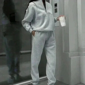 Grey Casual Women's Half Zipper Hoodie And Jogger Pants Two Piece Set