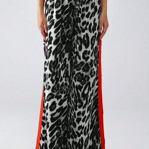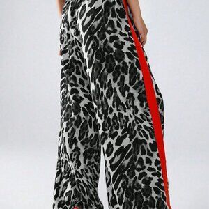 Grey Casual Women's Leopard Print Color Block Patchwork Loose Pants