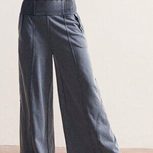 Grey Casual Women's Loose Wide Leg Washed Pants