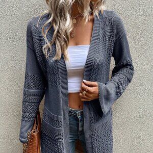 Grey Casual Women's Minimalist Hollow-Out Knitted Cardigan