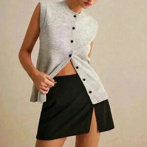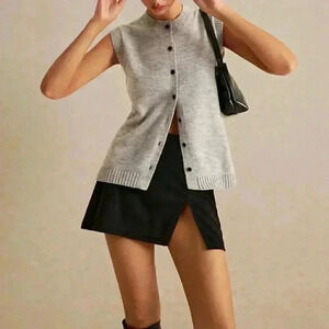Grey Casual Women's Minimalist Relaxed Sleeveless Jumper Vest