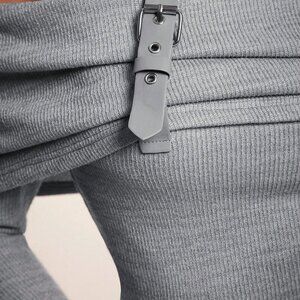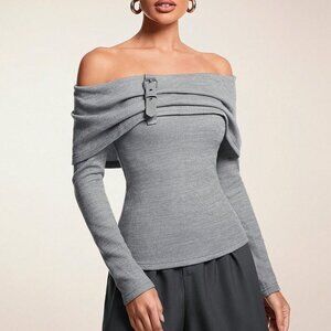 Grey Casual Women's Off-Shoulder Leather buckle Detailed shirt
