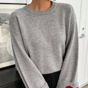 Grey Casual Women's Round Neck Cuff Heart Pattern Sweater