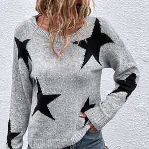 Grey Casual Womens Star Pattern Drop Shoulder Sweater