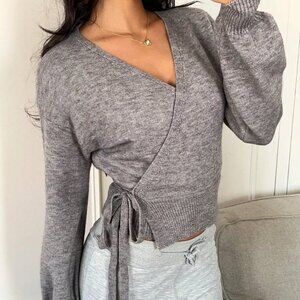 Grey Casual Women's Tie-Up Wrap Cardigan