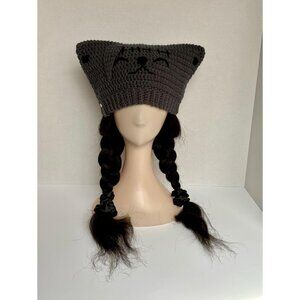 Cat ear beanie inspired by possessed sorcerer with long black hair and gauges in popular anime.