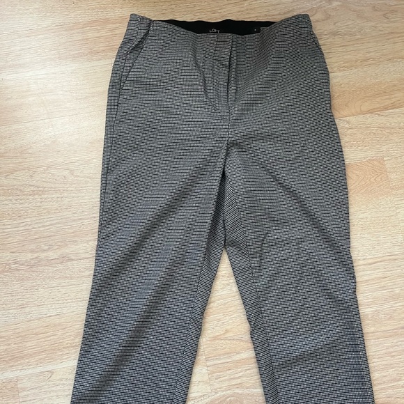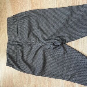 Comfortable, stretchy work pants, grey and blue checkered, high waist curvy fit