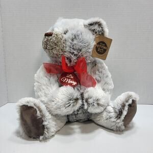 Grey Christmas Teddy Bear Plush Stuffed Soft and Cuddly Red Bow Petting Zoo VTG