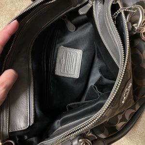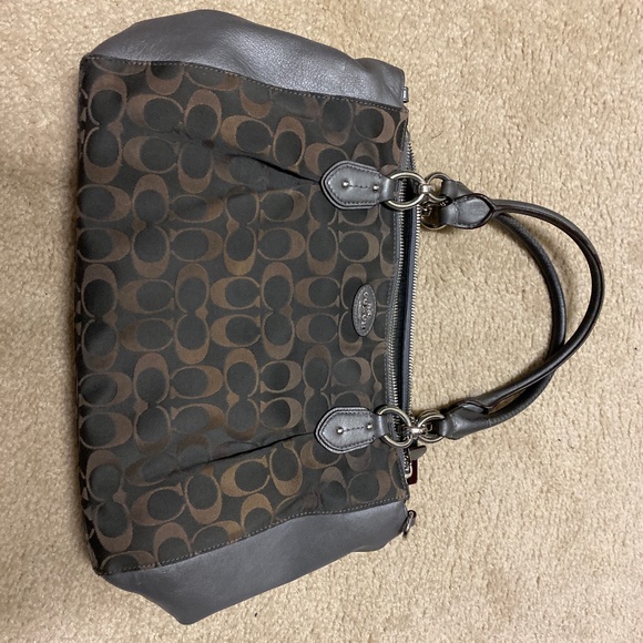 This classic Coach bag features the signature C printed fabric. The purse is in excellent condition- no discoloration in the fabric or wear on the purse’s handles.
