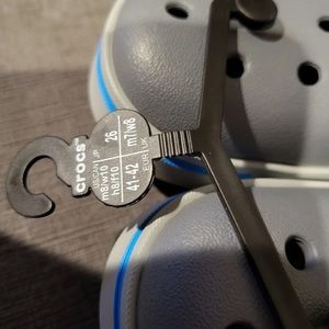 New grey crocs. Men’s size 8, woman’s size 10.