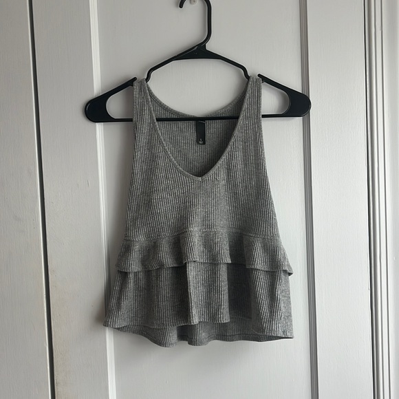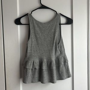 grey tank top, grey top, grey ruffle top, grey cropped top