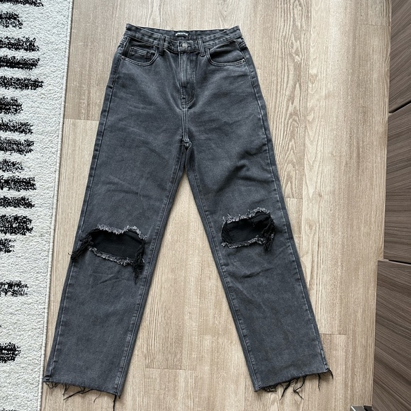 Grey Denim Jeans Baggy Fit Distressed Boyfriend Momokrom