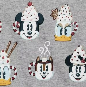 Grey Disney Characters & Hot Chocolate One Piece Footie w/ Mickey Mouse Hood