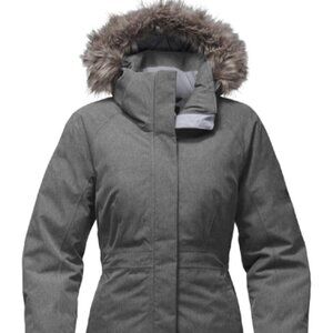 The North Face "Grey Down Winter Artic Coat with Hood and Removable Fur Fringe Goose Down 550
