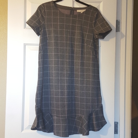 Preppy style Charcoal Gray dress with light pink hues. Adorable slightly ruffled skirt. Brand new, never worn, perfect condition.