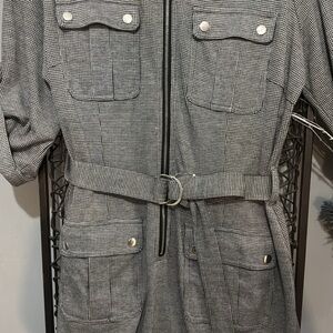 Elevate your style with this classic grey and white houndstooth shirtwaist dress. Perfect for office wear or weekend.
