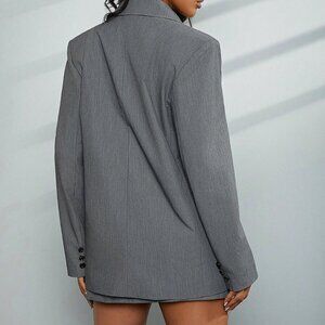 Grey Elegant Women's Oversized Single Breasted Notched Collar Blazer