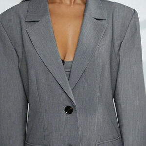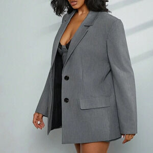 Grey Elegant Women's Oversized Single Breasted Notched Collar Blazer