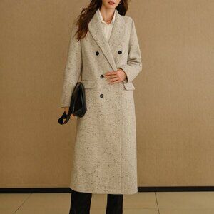 Elevate your winter style with this elegant longline pea overcoat, featuring a peak collar and flap detail. Made for the modern woman, this midi-length coat in grey is perfect for adding a touch of sophistication to any outfit.