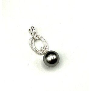 This elegant pendant showcases a lustrous faux grey pearl, suspended from a silver tone setting. Embellished with cubic zirconia, it offers a sophisticated touch to any ensemble. Ideal for adding a timeless accent to your jewelry collection, it's crafted for both durability and beauty.