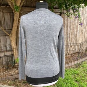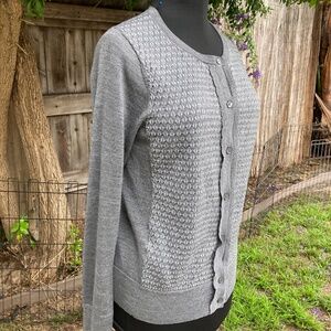 LOFT - Grey and white fine knit cardigan sweater with button closure and detail. In excellent condition, size Large #cardigan