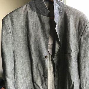Large Grey formal jacket perfect for professional environments. Matches with similar color suits.