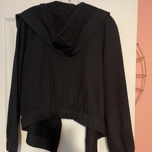Grey & Gray Open Front Sweatshirt, Black, Sleeves gathered at the wrist