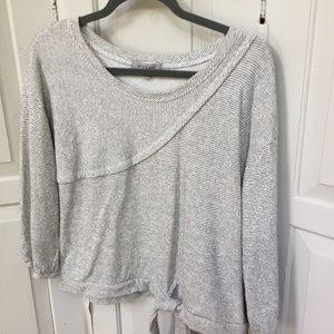 Grey & Gray slightly cropped gray and white striped 3/4 sleeve sweatshirt that ties at waist.