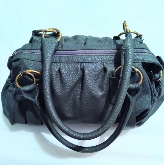 Sturdy Grey Handbag with zipper top.