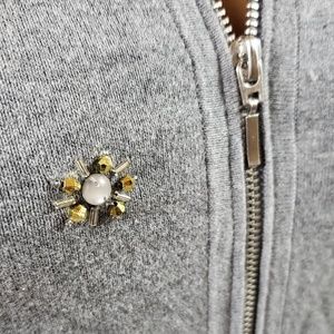 Cute grey hooded zip-up sweatshirt. Gold and iridescent beaded detailing on the front. Perfect as a casual lightweight jacket. Great condition and as always, price is negotiable. Check out our closet for more stellar bargains. Happy Poshing and thanks for shopping. Sparkle On!
