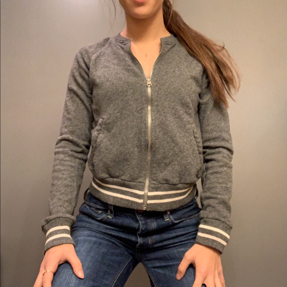 •Cloth grey jacket with cream stripes on cuffs