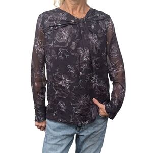 Grey Jason Wu Silk Blend Floral Sheer Blouse Feminine Romantic Evening 0