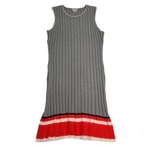 Grey Jason Wu Size Medium Sleeveless Chevron Knit Dress Gray Red Stretch Pleated