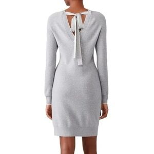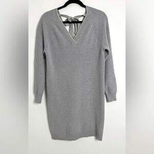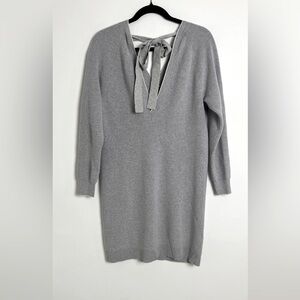 Grey Jason Wu Tin Grey Wool Blend Long Sleeve Ribbed Back Tie Sweater Dress Medium