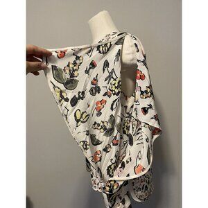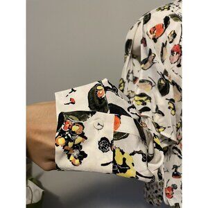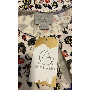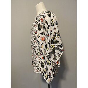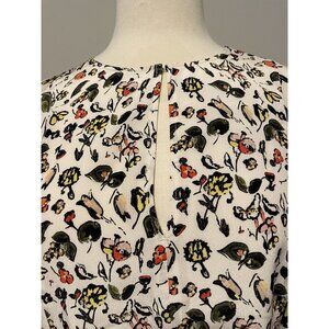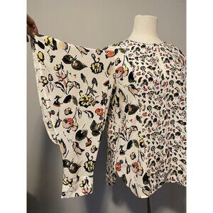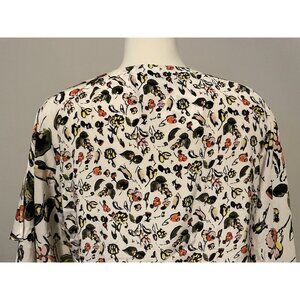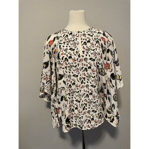 Grey Jason Wu White Silk Top with Floral Print and Front Keyhole, Size 6