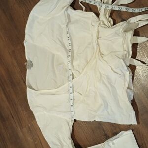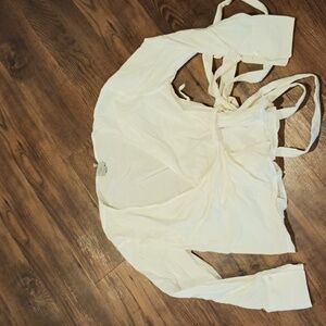 Details about the item: semi sheer VNeck wrap cross over long sleeve fitted loose fit button down alternative belt loops needs to be resewn on one side
