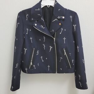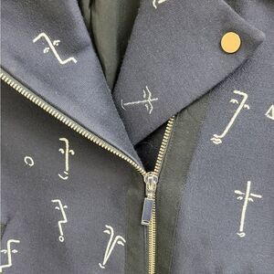 Grey Jason Wu Embroidered Face Crop Moto Jacket Size 8