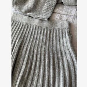 Grey Knit 2 Piece Set Turtleneck Sweater And Pleated Mini Skirt