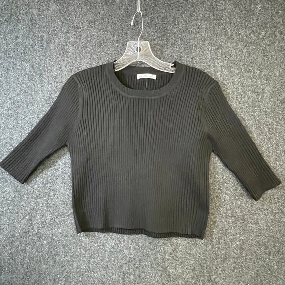 Grey Lab Black Ribbed Knit Top Women’s Size Small 3/4 Sleeve Stretch Minimalist